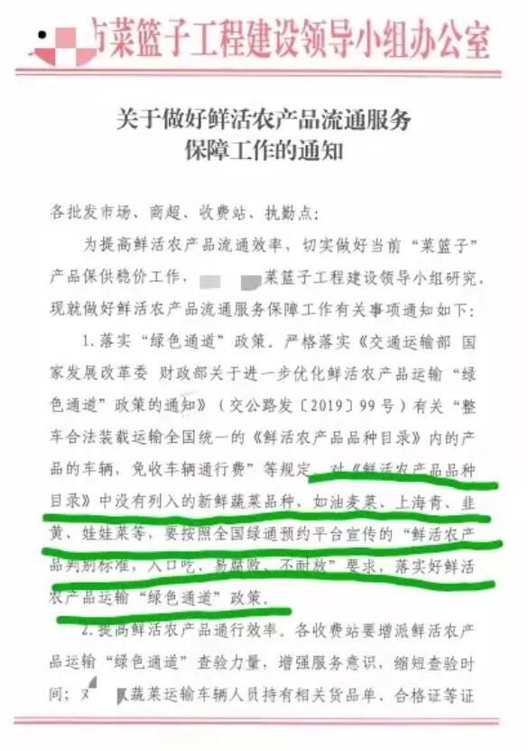 據(jù)全國部分主流官方媒體報道:11月初,中部某地方“菜籃子”工程建設(shè)領(lǐng)導小組辦公室發(fā)出通知,外地車輛運輸蔬菜進入該城市,非《鮮活農(nóng)產(chǎn)品品種目錄》內(nèi)的蔬菜品種,應(yīng)按照國家關(guān)于鮮活農(nóng)產(chǎn)品判別標準,享受鮮活農(nóng)產(chǎn)品運輸“綠色通道”政策,免收車輛通行費。