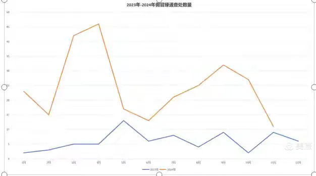 2023 年綠通數(shù)量共 132222 輛,免費(fèi)金額 375834942.22 元。2024年截至 11 月 20 日,綠通數(shù)量共 125346 輛,免費(fèi)金額 333207518.57元。數(shù)據(jù)按月度展開如圖: