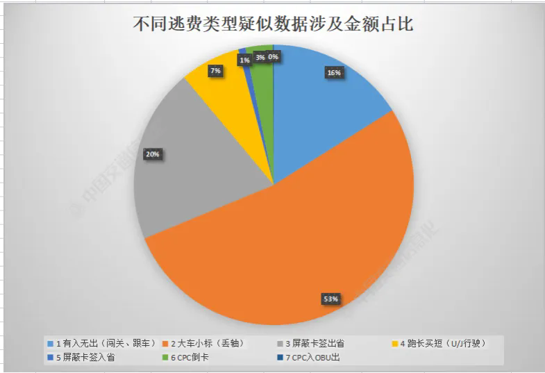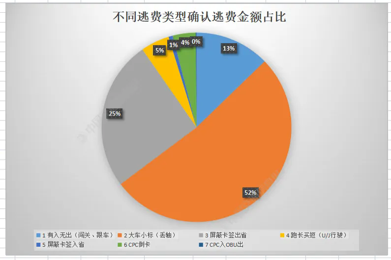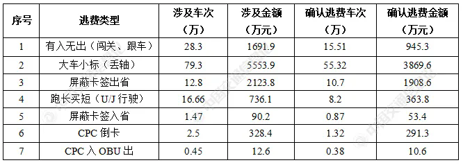 分析可得,有入無出(闖關(guān)、跟車)、大車小標(biāo)(丟軸)、屏蔽卡簽出省和跑長買短(U/J行駛)等4種逃費類型分別占據(jù)涉及行程數(shù)的96.87%、疑似損失金額的95.9%,是稽核系統(tǒng)需加大核查力度的逃費類型,特別是屏蔽卡簽逃費車次占為11%,逃費金額占比卻達(dá)25%,以全網(wǎng)聯(lián)網(wǎng)收費運行模式下出現(xiàn)的新型逃費類型,需要從技術(shù)、管理等多方面加強管理。有入無出(闖關(guān)、跟車)和跑長買短(U/J行駛)2類逃費類型確認(rèn)逃費金額占比有所下降,直接原因是稽核模型準(zhǔn)確率不高。下一步應(yīng)持續(xù)優(yōu)化迭代這2類模型,盡可能提高其準(zhǔn)確率,從而不斷提高可追繳比例。